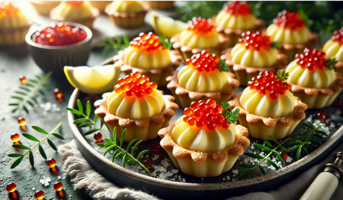 Один из популярных рецептов - тарталетки с икрой и сыром.