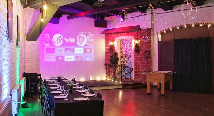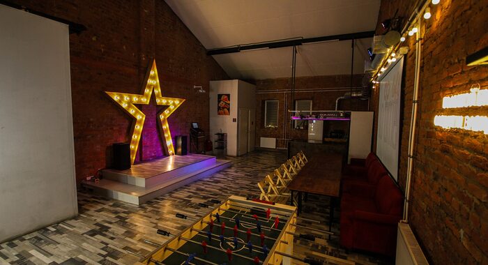 Это пространство создано для тех, кто хочет отметить выпускной 9 класса максимально свободно. В лофте есть всё для шумной тусовки: мощные колонки, профессиональное светооборудование и дым-машина, которая превратит обычные танцы в настоящее клубное шоу. Для активного отдыха предусмотрен настольный футбол, а караоке. Отдельный вход добавляет приватности вашему празднику.