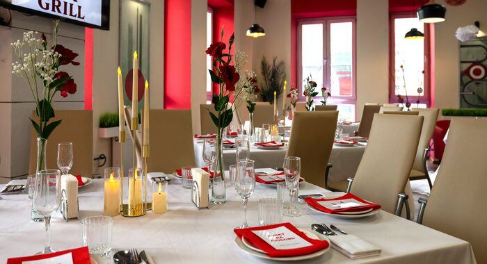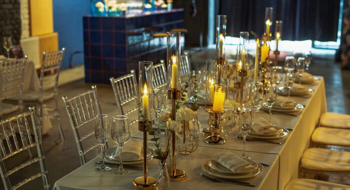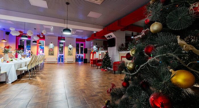 - Вариант «Микс». В лофтах можно разделить зоны. Учителя и родители общаются за фуршетом в одной части зала, а подростки зажигают с ведущим в другой. Все под присмотром, но никто никому не мешает.