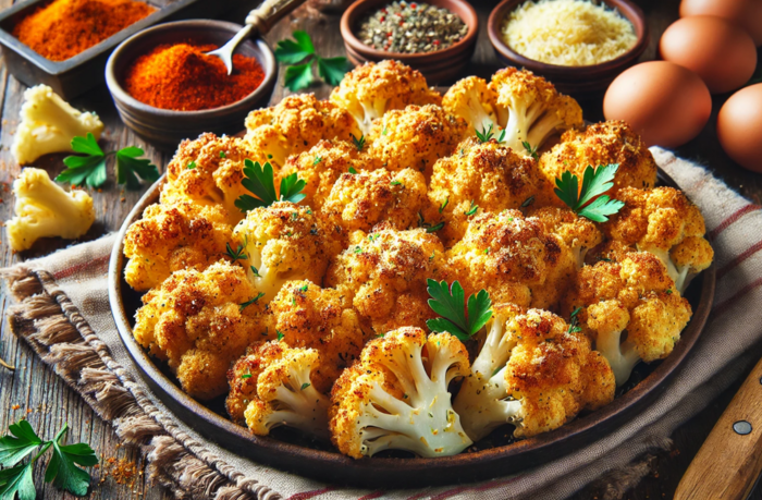 Еще один рецепт необычной закуски для банкетного стола, это цветная капуста, запеченная в кляре. Капуста полна витаминами и обладает полезными свойствами, поэтому данный рецепт будет особенно актуален в зимнее время, когда организму не хватает полезных элементов и солнца.