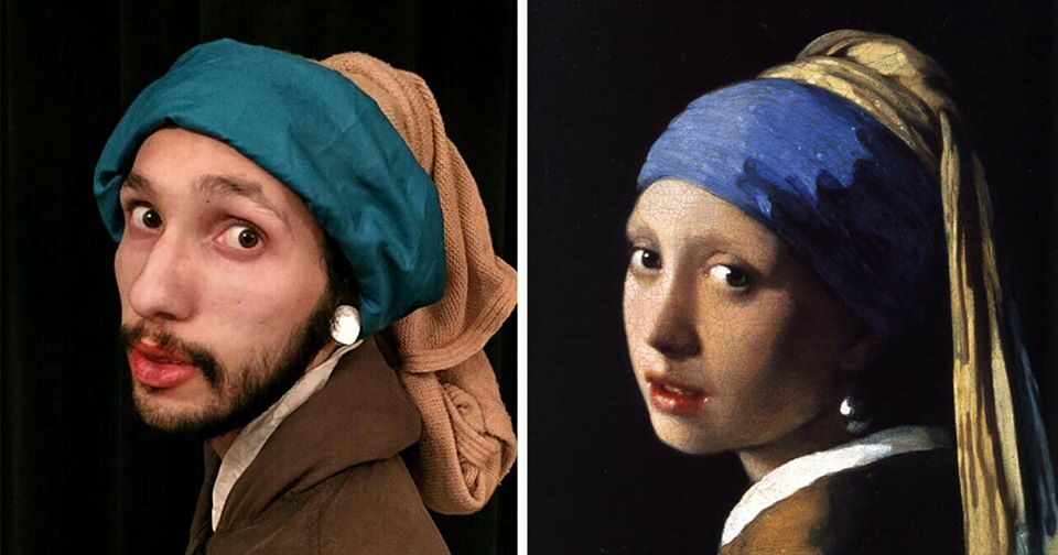 Это российский вариант #tussenkunstenquarantaine #covidclassics, набравший невероятную популярность в соцсетях. Тысячи участников, используя подручные средства, копируют шедевры мировой живописи. В ход идут вязальные нитки, махровые халаты, мужья и жены, кошки и крысы, а в результате получаются шедевры, от которых невозможно оторваться - от Босха до Репина, от Да Винчи до Серебряковой. Принять участие могут все желающие. Посты на модерацию принимают в фейсбуке в группе изоизоляция.