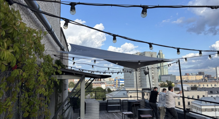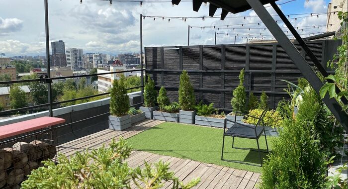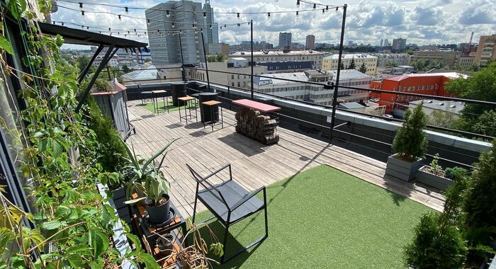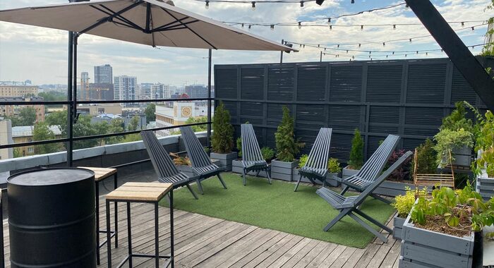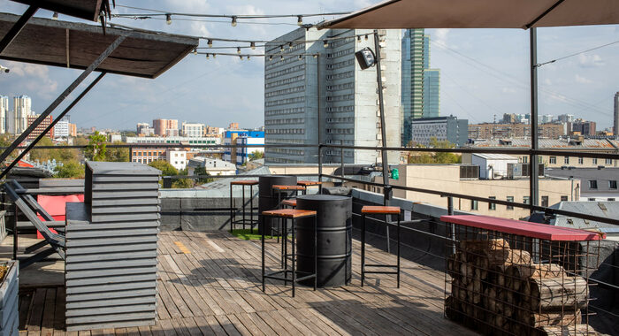 Особенности: стильная крыша с лаундж-зоной, фотозонами и местами для отдыха.