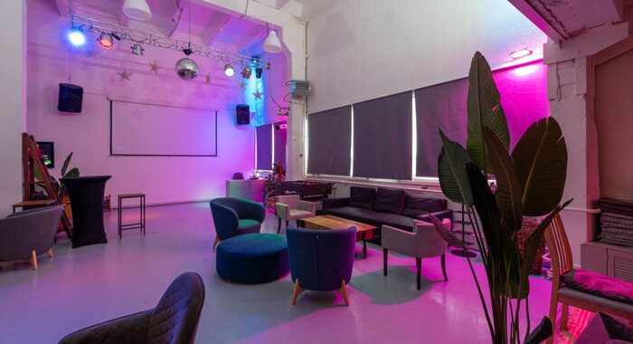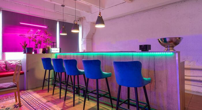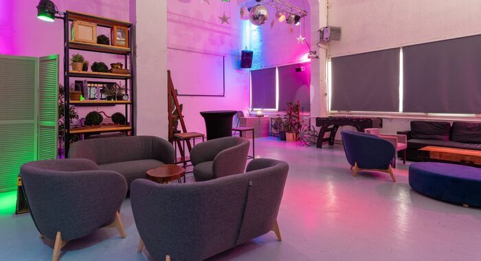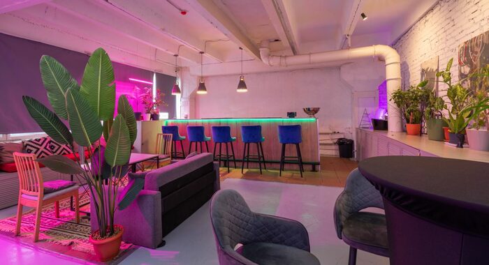 Сочетание индустриального стиля с дизайнерскими элементами, которые оживляют каждую деталь интерьера.Уютные диваны и удобные стулья располагают к долгим беседам, а барная стойка станет центром вашего события, где можно устроить импровизированный фуршет или дегустацию коктейлей.