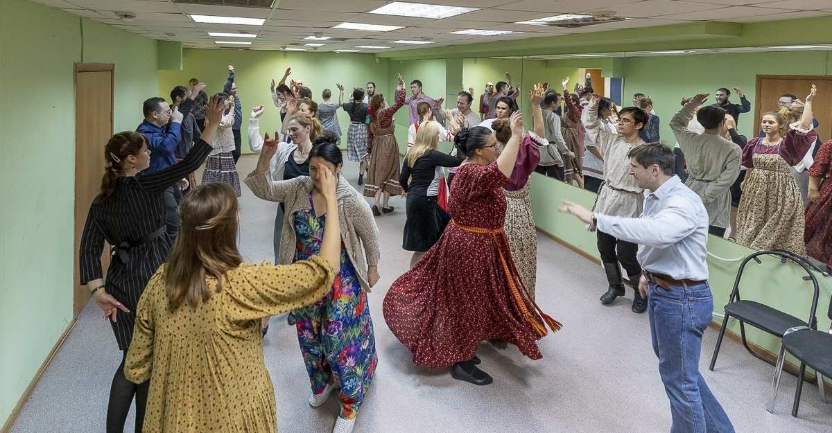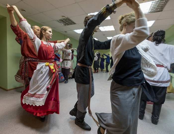 Николай и Анастасия Артамоновы, активисты проектов «Фолкпятачок» и «Фолклед», преподаватели фольклорного ансамбля "ТОП-вечёра" рассказывают, как проходят русские танцевальные вечеринки.