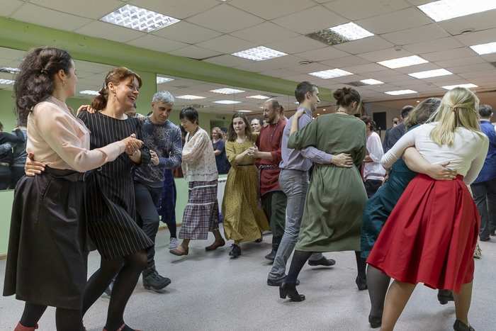 Мы собираемся там, где удается договориться с владельцами помещения или территории. Например, «Фолкпятачок» традиционно проходит в Екатерининском парке, с администрацией которого удается договариваться. В холодное время года мы стараемся устраивать вечерки в помещениях. Собственно, они почти ничем не отличаются от встреч на Пятачке, но из-за ограниченности пространства ощущения немного другие. Сейчас вечерки проходят в ДК "Гайдаровец", где мы репетируем с коллективом "ТОП-вечёра". Этот коллектив, кстати, образовался благодаря «Фолкпятачку» и вечёркам. Те ребята, которые хотели более глубоко изучать танцы и фольклор в целом, объединились в коллектив. Кроме того, в Москве организовываются и другие встречи и вечёрки. Например, наши друзья из клуба народных инструментов "Калитка" организовывают свои вечёрки в библиотеке им. Гоголя.