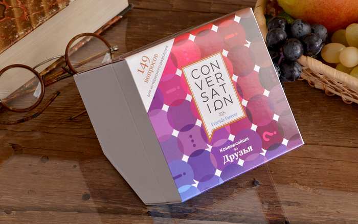 Внутри коробки карточки с вопросами. Такими, чтобы лучше узнать друг друга, вспомнить дикие случаи из жизни, завязать беседу. Вопросы могут быть самые неожиданные: "Что общего у членов твоей семьи?" или "Что вы делали в этот день 10 лет назад?". Ответить обязательно должны все игроки. Это идеальная штука, чтобы познакомить людей между собой, она способна разговорить даже интровертов. использовать осторожно, если достать игру в начале вечеринки, есть опасность, что гости не смогут оторваться от нее до самого конца.