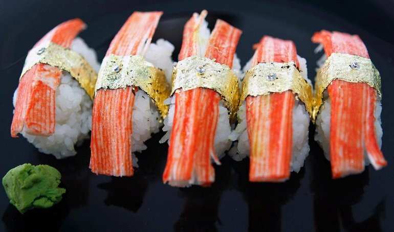 Японская кухня на втором месте по популярности на наших праздниках. Суши заказывают на каждую четвертую вечеринку. Стандартный сет на одного человека обходится в среднем в 500 рублей. А вот самые дорогие суши в мире делают на Филлипинах в Маниле. Молодой повар Анхелито Аранета, кроме самых дорогих морепродуктов, риса 12 летнего итальянского бальзамический уксус, японский рис, 70-летняя девственная вода, фуа-гра, морской огурец, жемчуг и африканские алмазы. Суши обернуты 24-каратным золотым листом. Съесть золотые-алмазные суши можно за 2,750$.