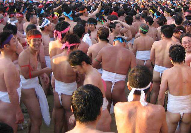 В Японии фестиваль Хадака Мацури проходит в феврале, в разных префектурах в разные дни. Самые масштабные торжества проводятся в городе Окаяма. Празднику уже около 500 лет. Мужчины собираются в храме, в одних набедренных повязках, забегают в храмовый бассейн, чтобы очиститься, а потом пытаются поймать амулеты (небольшие кусочки дерева), которые бросают в толпу монахи. На крупных церемониях может быть 8-9 тысяч участников, так что это довольно опасный способ поймать удачу. К тому же, в феврале в Японии холодно. Но ни холод, ни опасность быть раздавленными не останавливают японцев и гостей фестиваля из других стран.