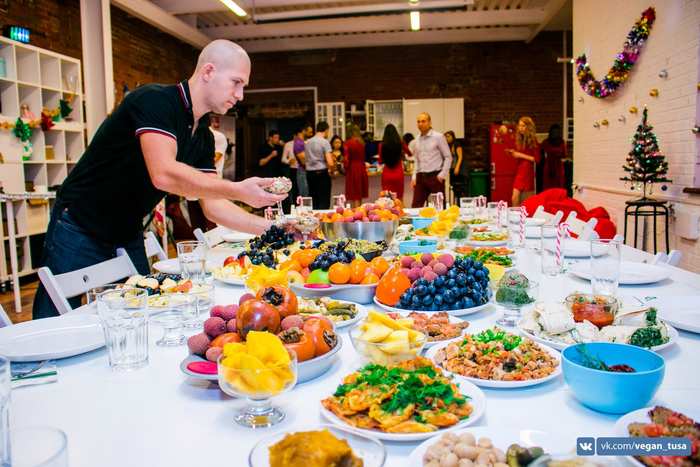 Первая веган-вечеринка была пробная, просто новогодняя тусовка, где собрались друзья-единомышленники. Мы сняли лофт, принесли еду. К следующей вечеринке я уже готовился основательно.