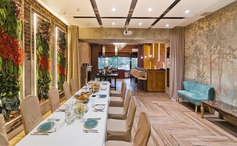 Кухня с акцентом на русские и европейские традиции. Менеджеры помогают с гибкой рассадкой и подбором меню под бюджет. Это отличное место для пресс-завтраков или светских ужинов.