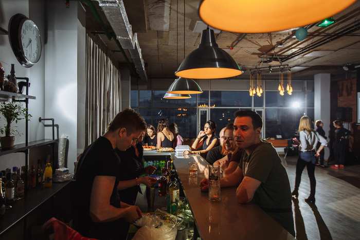 Под конец я подсчитал, в организации праздника приняло участие 12 человек, включая ведущую, стендапера, ди-джеев, официантов, администратора, видео оператора, кальянщика, двух барменов. Был еще ди-джей, который помогал ведущей и включал музыку в первой части вечера. Был фотограф, который сотрудничает с этой площадкой – он отработал просто на все 150 процентов, грамотно расставил профессиональный свет, ненавязчиво и круто фотографировал людей - даже те, кто не любят фоткаться с радостью ему позировали. Такой отдачи я вообще не встречал, он реально отфотографировал почти всех гостей.