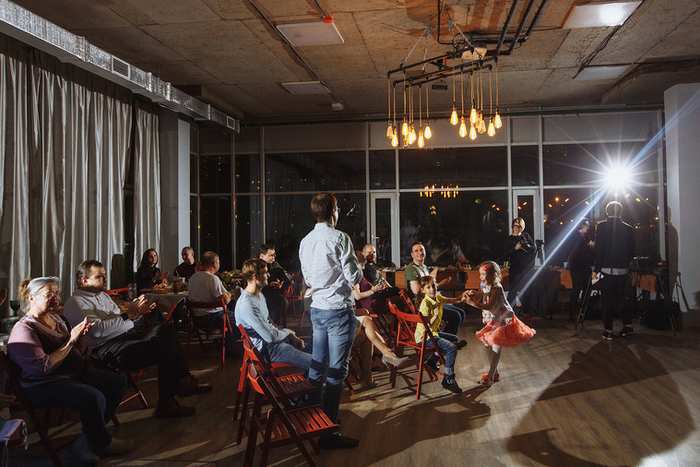 Он сразу уточнил, до какой степени «откровенные» можно темы поднимать, потому что видел, что в зале бегают дети, мы решили с ним пойти по пути «лайт». Так что у нас получился более софтовый вариант стенд-ап, хотя, когда дети куда-то убежали, Иван слегка увеличил градус «откровенности» и это тоже был прикольно, контрастно и необычно.