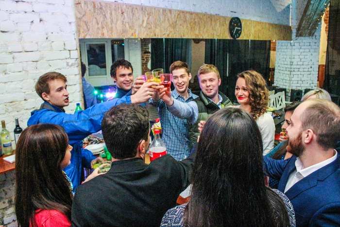 Мы с Алексеем знакомы уже более 15 лет, мы занимались в одном танцевальном коллективе, и у нас очень много общих друзей, их всегда легко организовать. Кроме общих знакомых были одноклассники друга и мои бывшие коллеги.