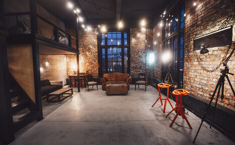 Вообще так как праздник летний, хотелось выход на террасу или балкон. В лофте, который я в итоге сняла, не было террасы, но были огромные окна с загадочным видом. Интерьер дико стильный. Было стопроцентное попадание в мои предпочтения.