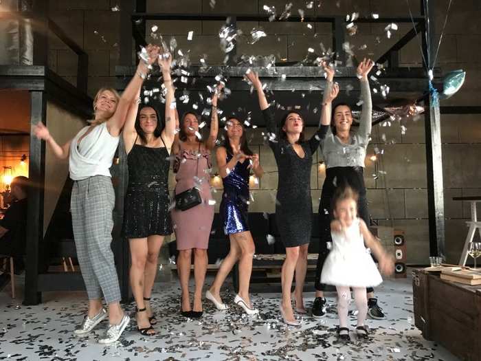 У нас была блестящая вечеринка "Глиттер-пати". Я объявила о дресс-коде при приглашении. Это условие для девочек конечно) и на удивление почти все были в платьях с блестками и в туфлях на каблуках. Давно мы себе такого не позволяли) Я купила целый килограмм конфетти, друзья принесли хлопушки, всё везде блестело!И даже торт был в блестках! А еще мне всегда важно накормить гостей. Последнее время этим элементом праздника пренебрегают, заказывают пироги или пиццы. Я так не могу, люблю, чтобы все вкусно поели. Все блюда мы приготовили с мамой сами. Чтобы гости ели-пили, общались. В середине праздника (пока пара моих товарищей отправились пополнять запасы алкоголя) я провела два заготовленных мной конкурса. Гости активно участвовали, там требовалась командная работа, подготовка, все молодцы справились. И уж после начались зажигательные танцы с конфетти.