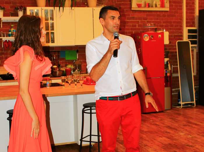 Мы сразу задумывали вечеринку с кулинарным уклоном и наличие кухни было обязательным. Выбирали помещение еще и по локации (недалеко от Сокольников или Строгино), и обязательно с выходом на улицу. Мы вместе с Игорем отсматривали помещения на сайте, а он договаривался о просмотрах. В итоге вместе выбрали кулинарную студию. В лофте можно было пользоваться посудой, варочными панелями, также был кулер с водой. Это все было очень важно для нас.