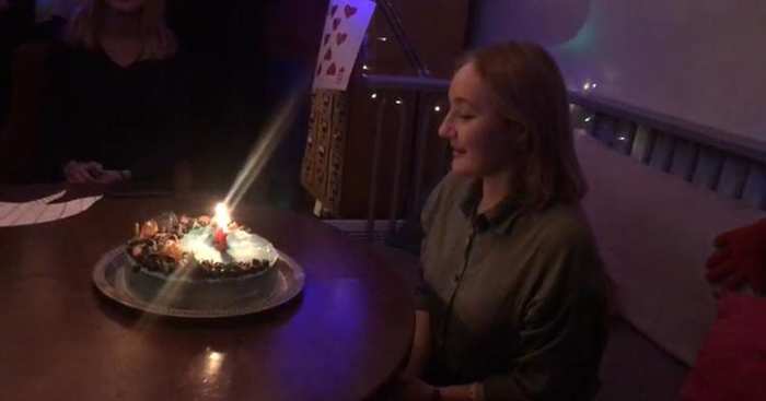Друзья пришли на место заранее, к счастью, администраторы пошли на встречу и разрешили прийти за пару часов до праздника и украсить пространство. Ребята развесили воздушные шарики, гирлянды и тематические декорации, связанные с книгой «Алиса в стране Чудес». Там были цветы и игральные карты, и большое игрушечное сердце. Сами друзья тоже оделись в костюмы, напоминающие об этой сказке - среди них были мартовский заяц и шляпник, которые устроили сумасшедшее чаепитие для именинницы за большим столом.