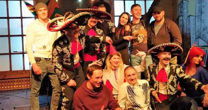 Кавер-группа, о которой я говорила в приглашении – это мои хорошие друзья. Группа называется CHILI SANCHOS. Как я и ожидала, ребята просто "порвали" зал. Они исполняли мексиканские, испанские, латинские хиты, в их репертуаре были и русские песни с латинским звучанием. Многие из этих песен с детства знакомы зрителям, так что все безудержно танцевали, хохотали и подпевали! Ребята из CHILI SANCHOS - не только профессиональные музыканты, но ещё и актёры! Когда они выступают в своих прекрасных национальных костюмах и с усами, ты просто напрочь забываешь, где находишься, и уносишься с головой и танцующими ногами в горячий, жгучий, жаркий и цветной карнавал!!! Всем этих ребят рекомендую!