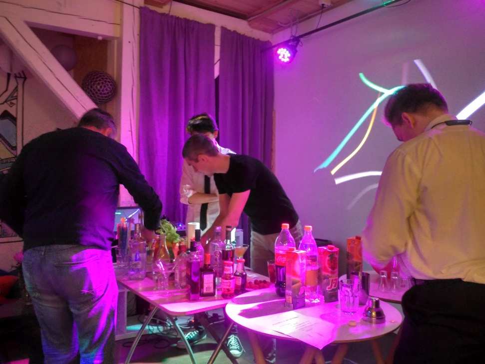 После того, как все вдохновились мастерством бармена – гостям предложили вытянуть бумажки с названиями коктейлей и под чутким руководством профессионала попробовать приготовить их самостоятельно. У нас были и сиропы, и крепкое, и софты, поэтому было очень интересно попробовать себя в барменском искусстве. Друзья никак не могли оторваться от этого дела и уже после конкурса еще некоторое время экспериментировали.