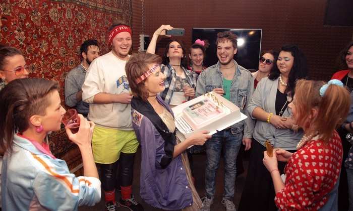 Фотографии на фоне ковра – это не только шутка из интернета, но, похоже, и новый тренд. Дарья не стала оформлять гламурную фотозону или заморачиваться пресс-воллом. Бабушкин ковер на стене решил проблему классных фото, особенно в сочетании с дресс-кодом вечеринки в стиле 90-х.