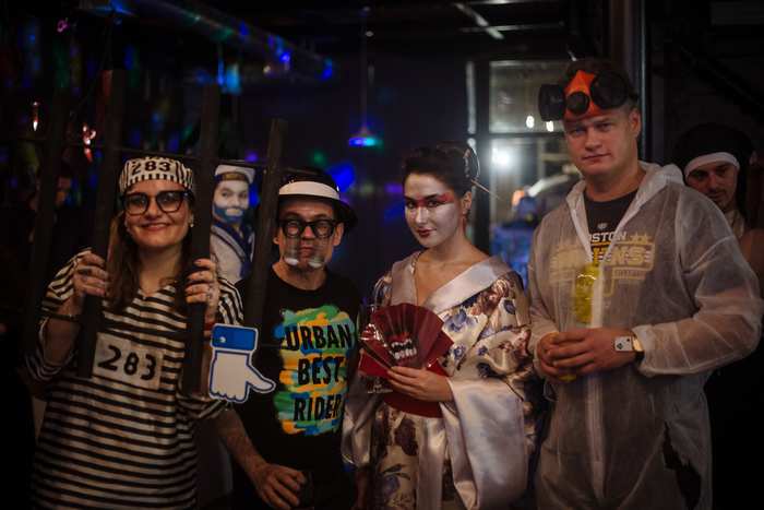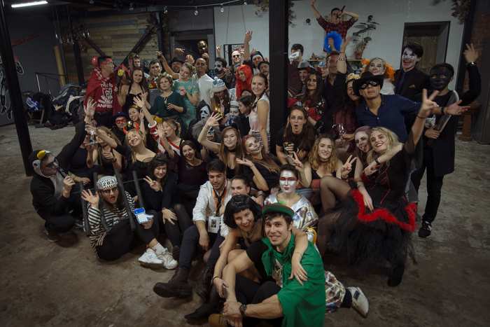 Это была не первая наша вечеринка такого формата, в прошлом году мы тоже арендовали лофт для Хэллоуина. Такой формат нам очень понравился, и в этом году мы решили действовать по тому же сценарию. И было еще круче, в этот раз желающих оказалось намного больше, пришлось даже ограничивать количество мест до 80-ти, чтоб всем было комфортно находиться в помещении, не наступая друг другу на ноги. В итоге из 80, оплативших участие, пришло 70, но в самом лофте могло бы разместиться и сто гостей. Было комфортно, абсолютно не тесно, часть людей тусовалась на огромном балконе. Единственной проблемой стал один туалет, приходилось стоять в очереди.