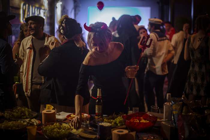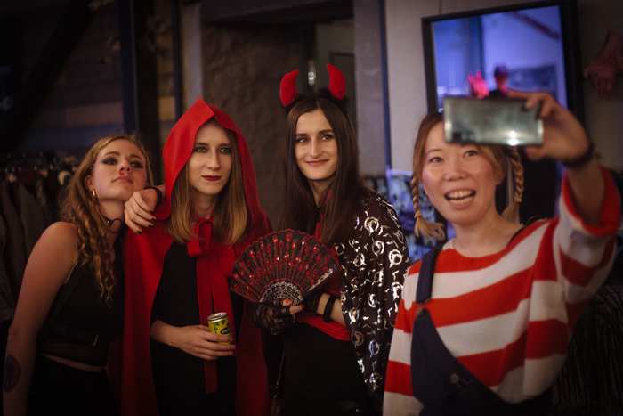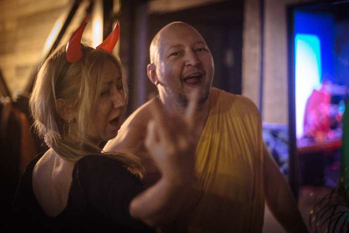 Главным условием прохода на вечеринку было наличие страшного образа. Это мог быть костюм, или грим, или аксессуары в хэллоуинском стиле. В итоге на вечеринку приехали Малефисента, Пеннивайз, Джокер, дьяволы, кошки, падший ангел, священники и даже пиксельная цензура. Готовили образы дома самостоятельно, кто во что горазд. Костюмы были такие крутые, что мы даже устроили конкурс на лучший образ, все гости писали на бумажках, какой персонаж понравился им больше всего. А победил в этом конкурсе не злодей и не женщина-кошка, а парень в костюме буддистского монаха.