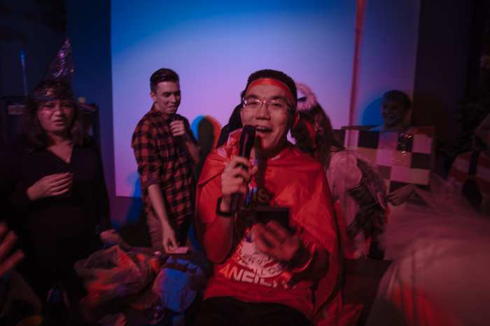 Свои шесть часов в лофте мы использовали по полной программе. Устраивали танцевальные баттлы, забавный флешмоб, во время которого все повторяли за ведущей танцевальные движения. Вытягивали предсказания с приколами. Все было организовано очень просто, без приглашённых специалистов, своими силами. Украшали зал все, кто смог прийти пораньше. Профессионально фотографировал наш друг, он живёт в Финляндии, но приехал повеселиться специально на эту вечеринку. За музыку тоже вызвался отвечать ещё один наш друг. Еду и алкоголь гости приносили с собой.