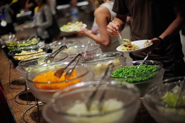 Может быть для кого-то такое предложение покажется странным, но это достаточно распространенная практика. Каждый из приглашенных на вечеринку гостей приносит с собой какое-то любимое блюдо или алкоголь. Таким образом получается разнообразный и полноценный стол за которым точно никто не будет голодать. Конечно, этот вариант больше подходит для достаточно небольшой компании близких друзей, когда не нужно заботится о красивой подаче. Еще один момент, который стоит учитывать при выборе формата «еда от гостей» - заранее обговорить примерное меню, на случай если у кого-то из присутствующих аллергия, или намечается противостояние вегетарианцев и мясоедов.