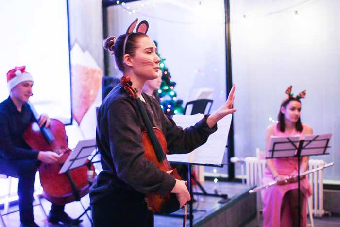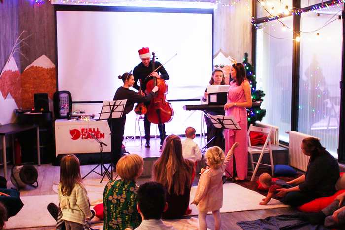Играем мы всегда только классику и включаем в программу несколько детских песен. Музыкальные инструменты бывают разные. Прежде всего, я сама музыкант, поэтому нередко и сама играю детям. На концерте в декабре у нас был большой состав- скрипка, виолончель, фортепиано и флейта. К декабрьскому концерту был специально привлечён композитор, который делал нам переложение номеров из «Щелкунчика» и других новогодних спектаклей.