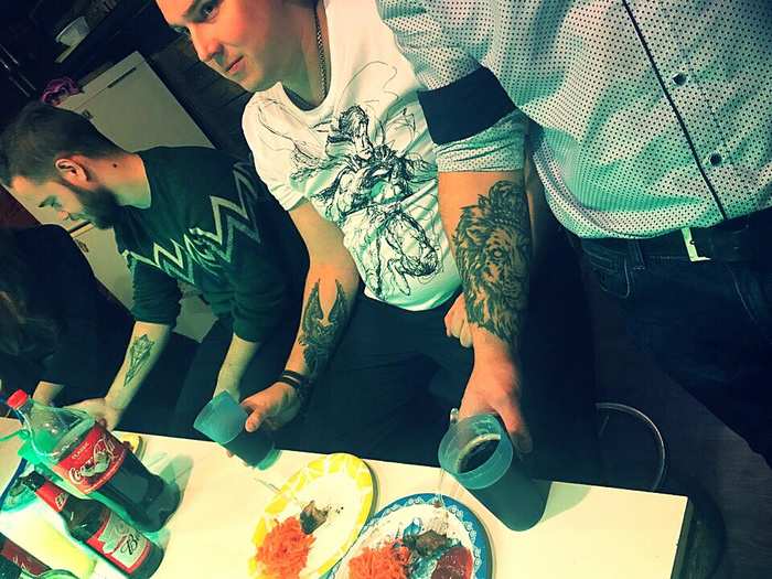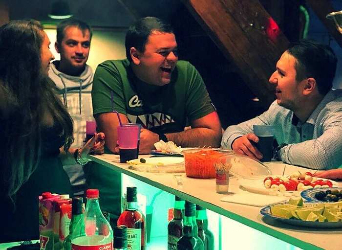 Ощущение было будто это домашний клуб :) Каждый мог делать что захочет. Никаких принудительных конкурсов или обязанностей. Гости общались, курили кальян, выпивали, фотографировались в новом для себя интерьере, танцевали. Танцев было много! Танцевали даже те, кто не разу не был замечен танцующим, где-либо еще. Атмосфера помещения и осознание того, что нет посторонних глаз очень способствовало раскрепощению и как итог танцам)Для наших гостей мы приготовили закуски - канапе, мини-сэндвичи, солености. Все готовили сами. В самом лофте арендовали мангал и изжарили 8 кг шашлыка. Алкоголь был в изобилии - ром, виски, с традиционной колой. Все было куплено и приготовлено с запасом, потому еды и напитков хватило сполна.