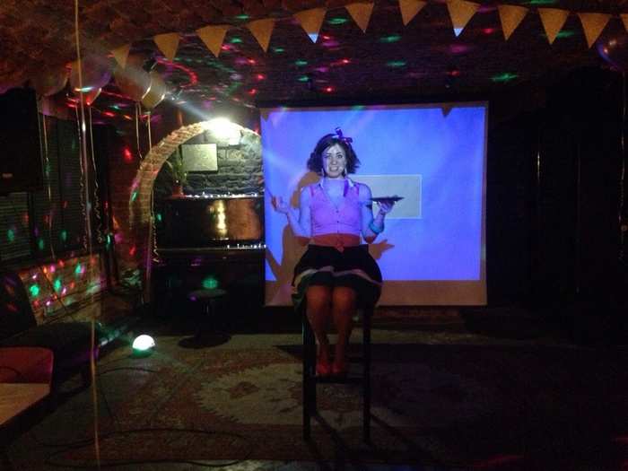 Кроме диско, были и другие развлечения. Среди моих гостей оказалось много ребят из «Импротеатра», я там когда-то тоже играла. Поэтому, мы всегда устраиваем на тусовках театральные развлекухи. И сейчас были несколько импровизационных театральных конкурсов. После одного из таких конкурсов в центре зала остался стул, друзья усадили меня на него и танцевали вокруг. Было очень весело. А потом пели караоке, но не просто так, а те песни, которые я заказывала, получилась такая «программа по моим заявкам».