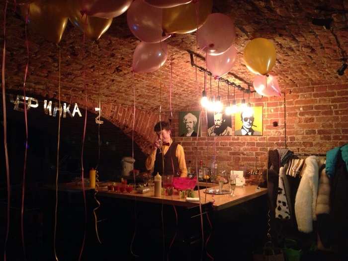 Мы постарались все оформить в соответствии с концепцией. У нас были 2 диско шара, которые светились разными цветами – их повесили над танцполом, все блестело, работал бар с разными напитками, было много воздушных шаров, растяжек с флажками. А еще у меня есть фишка: каждый год на свой день рождения, я называю свой праздник «Успешной вечеринкой» и вешаю растяжку с надписью «Успешная вечеринка».
