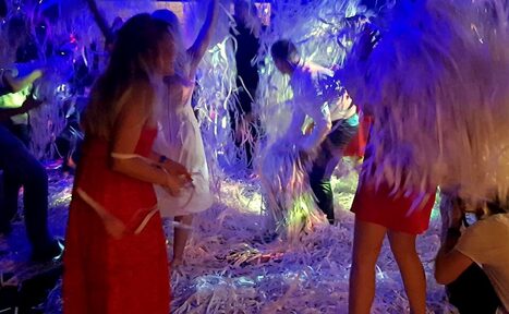 У нас получилась небольшая концертная программа, связанная с основной идеей вечеринки, одни гости танцевали танец под музыку из фильма, другие разыгрывали сценку из картины.