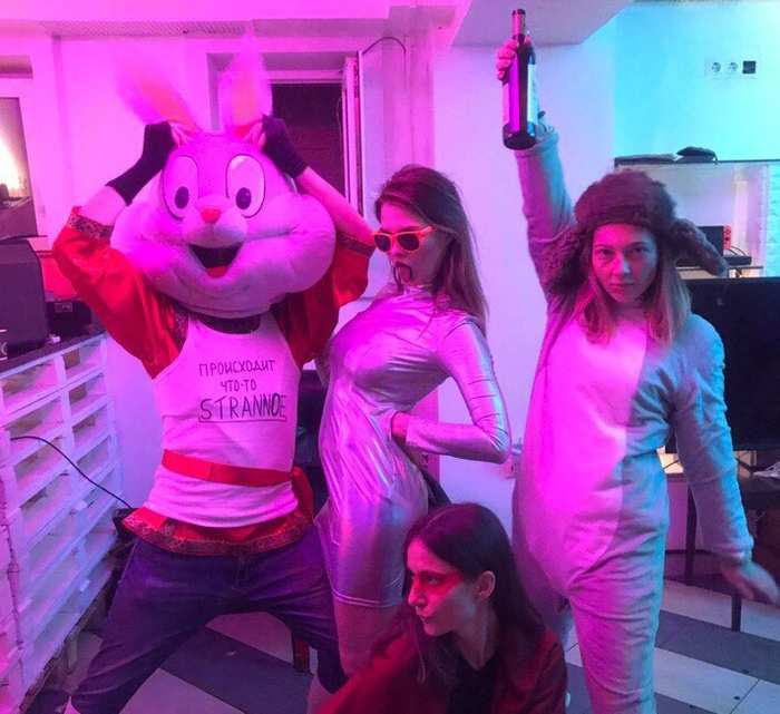 Для гостей у меня была всего одна “установка” - я предложил ребятам одеться “странно”. Задача была воплотить в своем наряде все, что они понимали под этим словом. Не все решились на эксперимент, однако, те, кто все же решился, выглядели изумительно! Я немного поизвращался и поверх русской традиционной рубахи надел майку-алкоголичку, расписанную маркером. Было прикольно, когда странно одетые люди как ни в чем не бывало смешались с обычно одетыми.