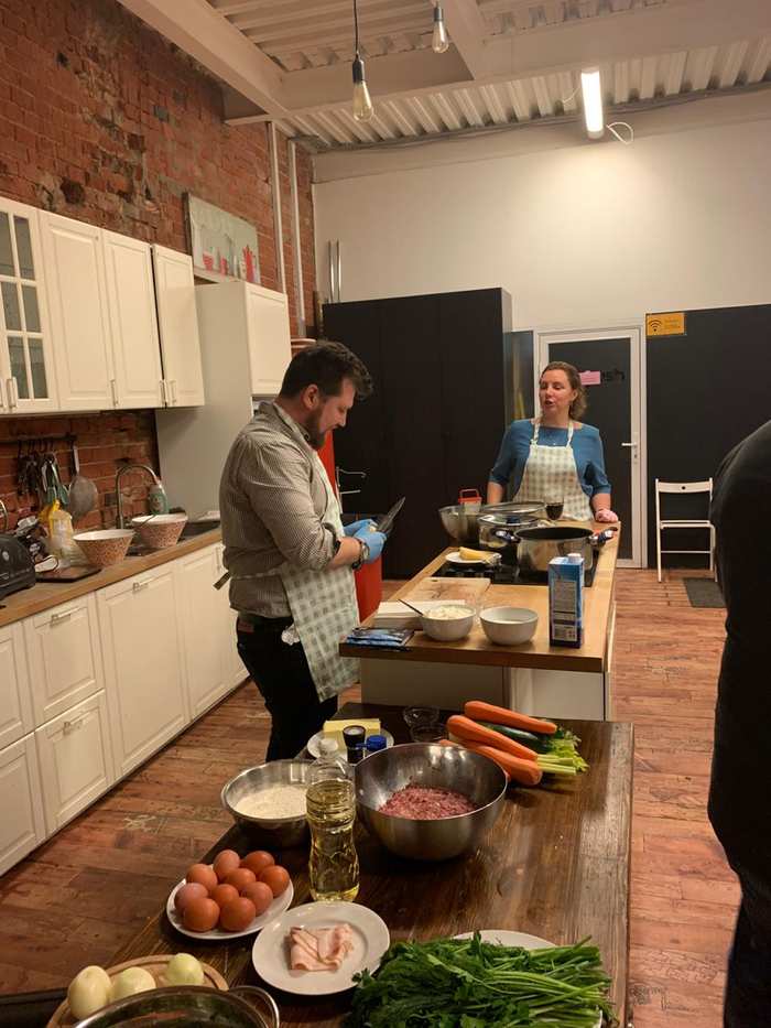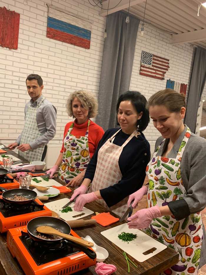 Мастер-класс по пельменям проводил профессиональный повар. У нас в команде несколько поваров, с которыми мы постоянно сотрудничаем. По списку от повара мы заранее закупаем продуты, бронируем лофт, проверяем, есть ли все необходимое для приготовления нашего блюда.