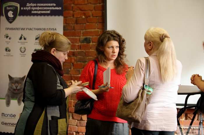 Еще мы обращаем внимание на то, чтобы было оборудование для презентаций - проектор, экран и микрофон. Чтобы можно было удобно разместить нужное количество гостей. На семинар заводчики приходят без животных, но иногда возникает необходимость продемонстрировать какие-то вещи на настоящих зверях. И тогда мы ищем помещение, в которое разрешат привести кошку или собаку. Это совсем не трудно, и большинство владельцев помещений нормально к этому относится.