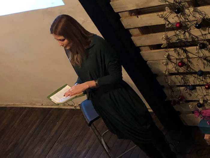 Еще для гостей мы приготовили «поэтическое бинго». Правила похожи на обычное бинго, или по- нашему лото. Каждый гость получил карточку с клетками - в них были вписаны слова, которые встречались в стихах. Гости слушали стихи и, если в них встречалось, написанное на карточке слово, отмечали его у себя. Кто набирал 6 слов, кричал «бинго». Таким образом, гости более внимательно слушали чужие стихи.Несколько человек исполнили свои тексты под гитару. Был также небольшой перформанс – танцы под стихи.