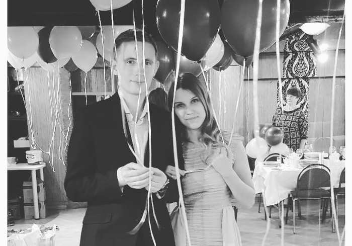 Для создания праздничной обстановки я украсила пространство шариками. Выбрала белые и голубые: голубой – это мой любимый цвет, и платье у меня было в той же гамме.