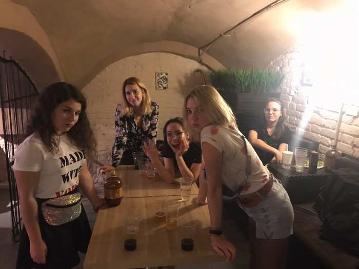 Зато организовали турнир по бирпонгу. Кстати, о таком развлечении мы задумались, когда выбирали лофт. В одном из лофтов, которые мы смотрели, был стол для бирпонга. То помещение мы не сняли, но идею взяли на заметку. Мы соединили несколько столов, взяли стаканчики, мячики. Гости поделились на команды по три человека. Поскольку идея устроить бирпонг была довольно спонтанная, никаких призов или дипломов мы не предусмотрели. Просто победителям наливали двойную порцию того, чего они хотели. На баре мы стояли сами, у администратора попросили освободить для нас барную стойку, чтобы удобно было угощать гостей. Алкоголя в принципе хватило, но если бы было еще, то лишним бы не было. То же самое и с едой.