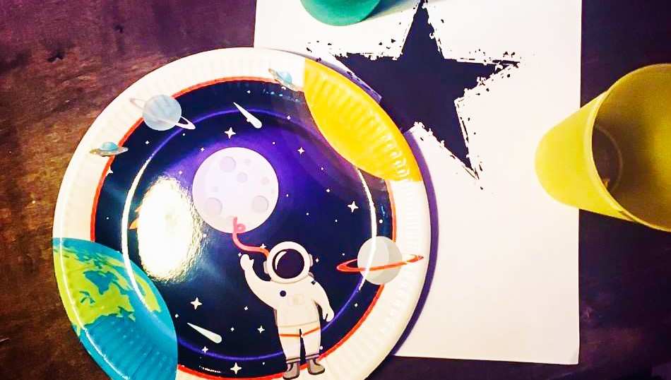 Под такую тематику оказалось просто украсить любое пространство. В выбранном мной лофте и так было много интересных деталей интерьера: картины, торшеры, гирлянды, белый кирпич. Мне оставалось только добавить космичности. Я купила черные серебряные и всякие космические воздушные шары, посуду под цвет. А на столах рассыпала фольгированные звездочки.