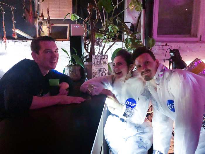 Гостей было не очень много, человек 30. Только друзья, примерно одного со мной возраста. Я не оговаривала жетско тему вечеринки, но в приглашении написала, что буду безмерно рада, если внешний вид гостей будет связан с темой космоса. Не хотелось сильно напрягать ребят и предлагать им варианты, которые будут слишком сложными или слишком дорогими.