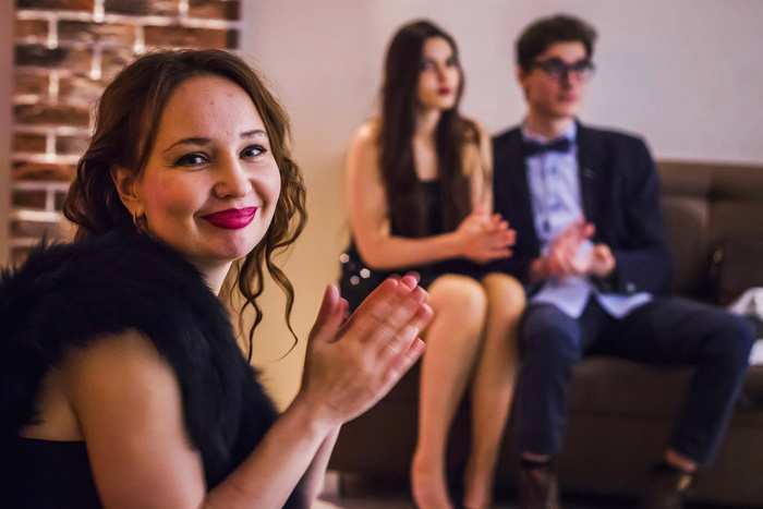 Между номерами мы делаем перерыв, и в это время все могут пообщаться и перекусить. В этот раз я заказывала пиццу, а одна из студенток принесла торт, были бутерброды и немного вина. Организацией праздника занималась я, а оплачивали мы его общими силами. За эти деньги мы сняли лофт, организовали фуршет, пригласили звукорежиссера.
