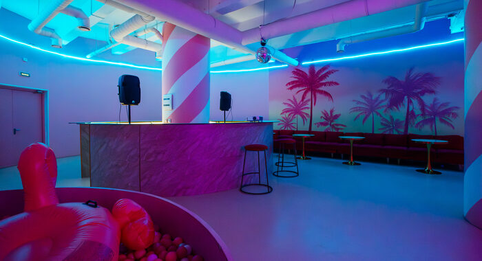 Бассейн с шариками и большой фламинго — яркие детали, которые гарантируют море фото и сторис.