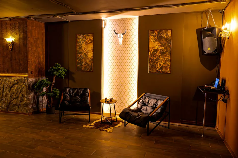 В аренду включено всё, что обычно приходится собирать по частям: проектор FullHD, мощный звук, безлимитное караоке, подключённый ноутбук, быстрый WiFi, настольные игры, холодильник, микроволновка, чайник, свежий воздух поддерживает кондиционер. По запросу предоставляется PlayStation 5. Мебель и посуда уже расставлены и ждут гостей — диваны, столы, стулья, бокалы, тарелки и все необходимое.
