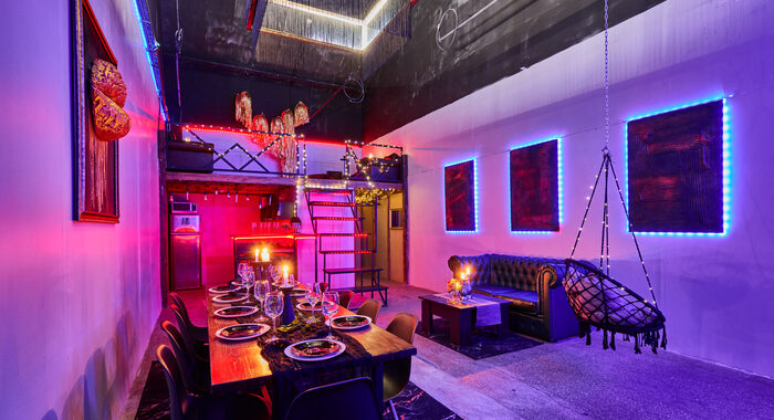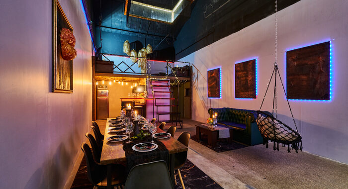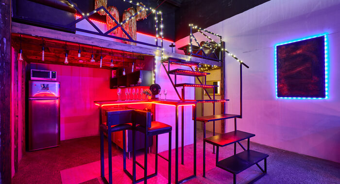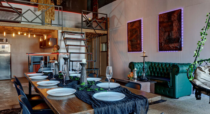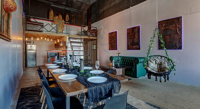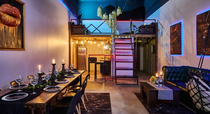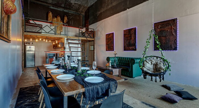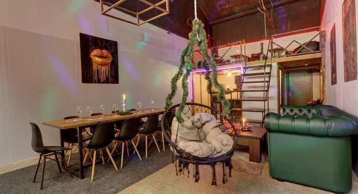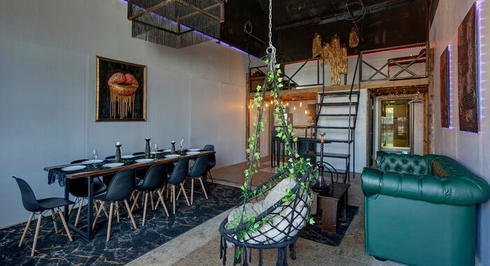 Современный двухуровневый лофт с необычными дизайнерскими элементами открылся в Москве.