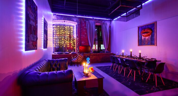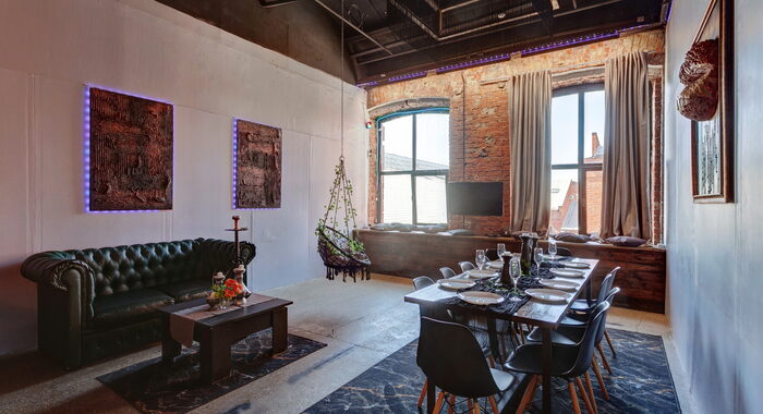 Вообще в лофте достаточно пространства для 35 гостей. Для комфорта в лофте предусмотрены: