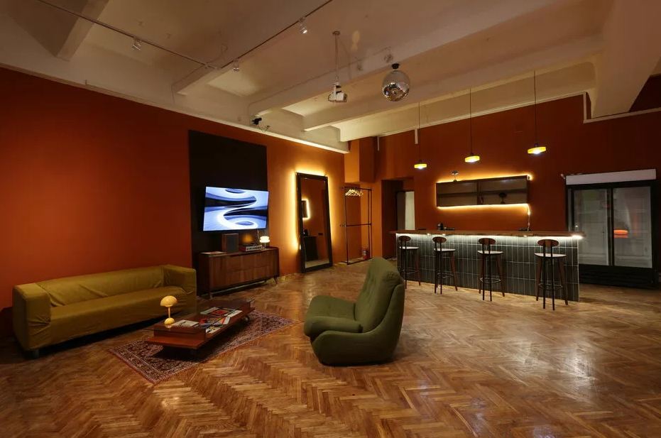 Пространство площадью 65 квадратных метров рассчитано на проведение частных мероприятий, вечеринок и камерных ивентов численностью до 20–25 человек.