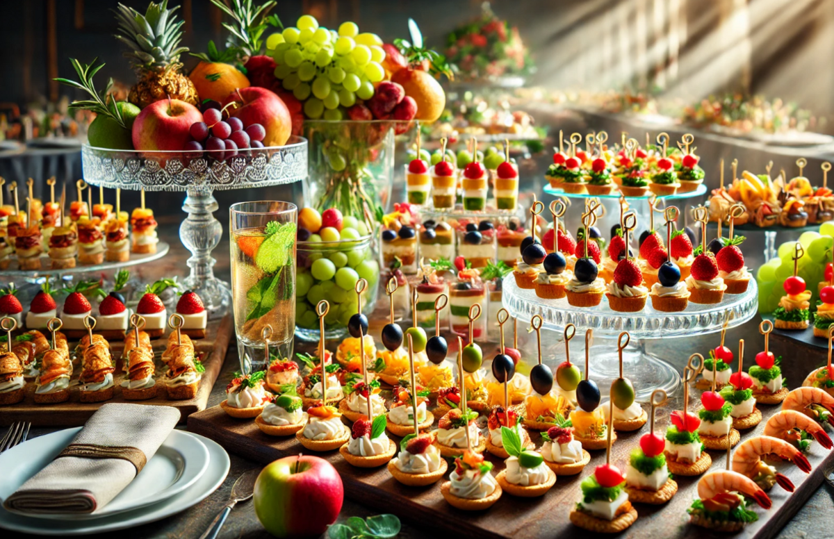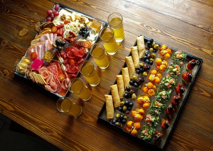 Периоды кризисов, пандемии и других внешних факторов вернули в нашу жизнь домашние ламповые посиделки на день рождения или юбилей. Конечно, есть большой плюс, но и минус есть обычная еда не всегда подходит всем гостям. Кто-то не есть продукты с содержанием лактозы, кто-то вегетарианец. Удивить гостей становится все труднее. Далее будет пример фуршетного меню, блюда из которого вы сможете заказать на нашем сайте. В нем представим сочетания вкусов, и при этом отойдем от привычного банкетного варианта.