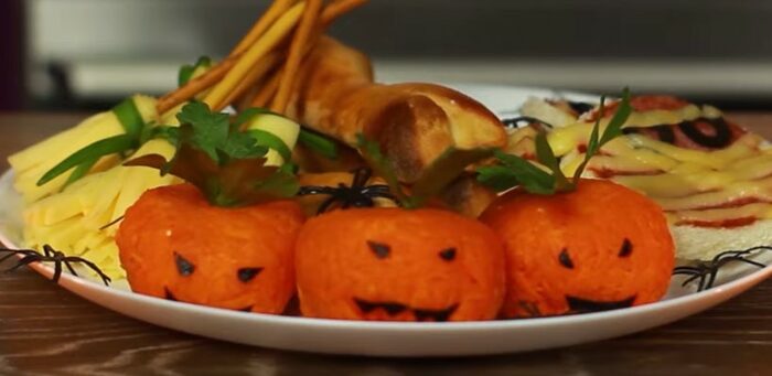 Для приготовления вкусной и яркой закуски в форме маленьких тыковок , вам понадобятся: