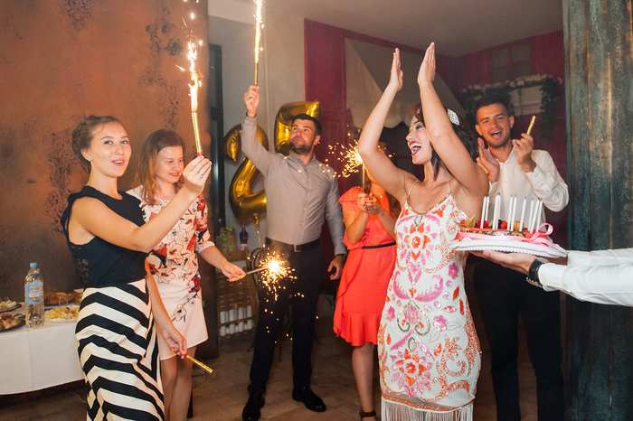 Я смотрела разные тематические вечеринки в интернете и выбрала тематику Гэтсби, именно из-за красивых платьев. И себе специально для Дня рождения выбирала платье и головной убор в стиле 20-х. К сожалению, не все гости смогли выдержать дресс-код. Мальчикам было проще, они просто надели костюмы и нашли шляпы, а из девушек только три подруги соответствовали тематике, зато это выглядело здорово, остальные просто были в коктейльных платьях.